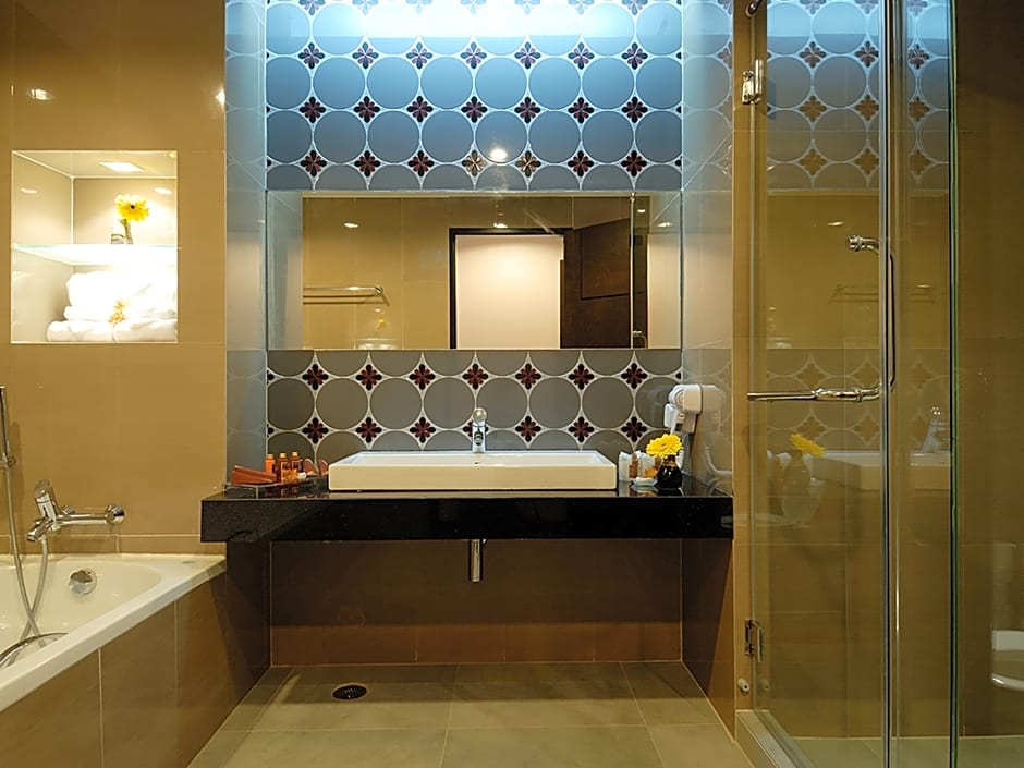Air-conditioned room offers a city view. It comes with a cable TV, a DVD player and a mini-bar. A bathtub is included in an private bathroom.