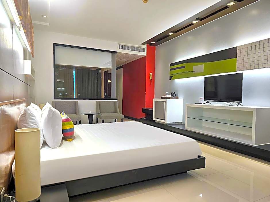 This suite's standout feature is the hot tub. This spacious suite includes 1 living room, 1 separate bedroom and 1 bathroom with a bath and free toiletries. The suite's kitchenette, which has a refrigerator and an electric kettle, is available for cooking and storing food. The air-conditioned suite offers a flat-screen TV with cable channels, a mini-bar, a seating area, a dining area as well as city views. The unit has 1 bed.