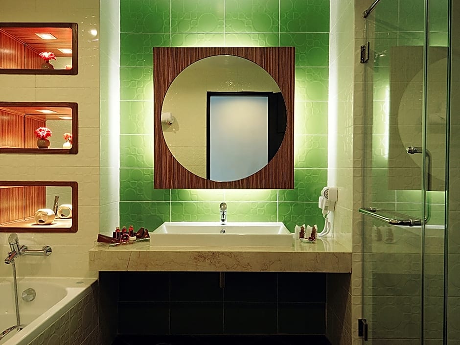 Air-conditioned room offers a city view. It comes with a cable TV, a DVD player and a mini-bar. A bathtub is included in an private bathroom.